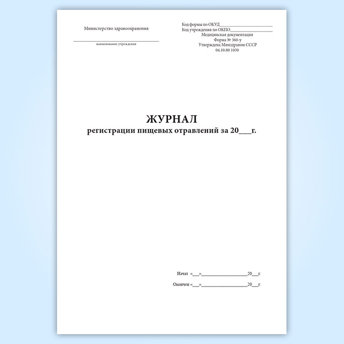 Журнал регистрации пищевых отравлений за год (форма 360/у) в Рошале купить