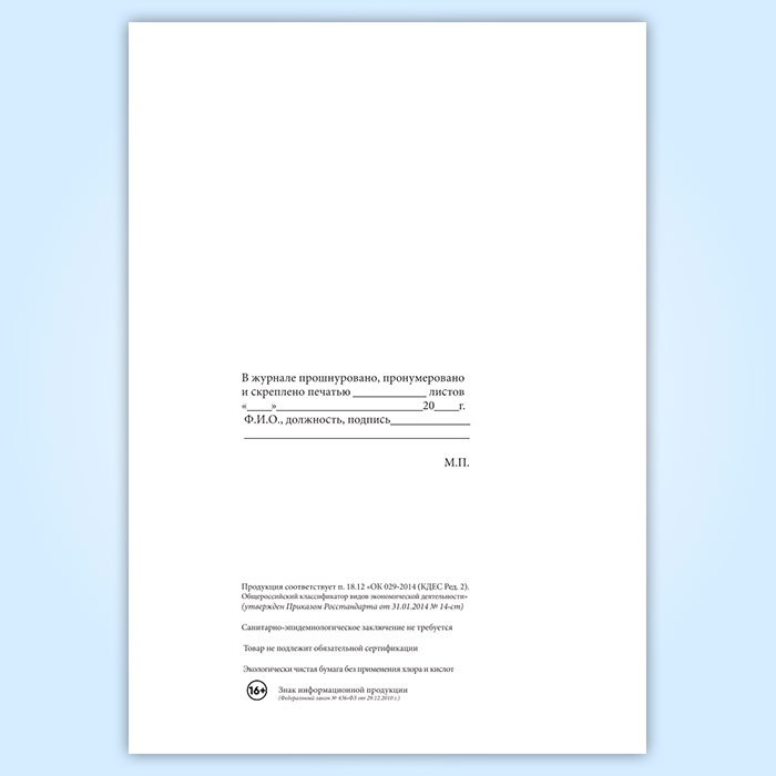 Вы получаете печатную продукцию прошнурованной и c местом для вашей печати в соответствии с действующими нормативными документами: