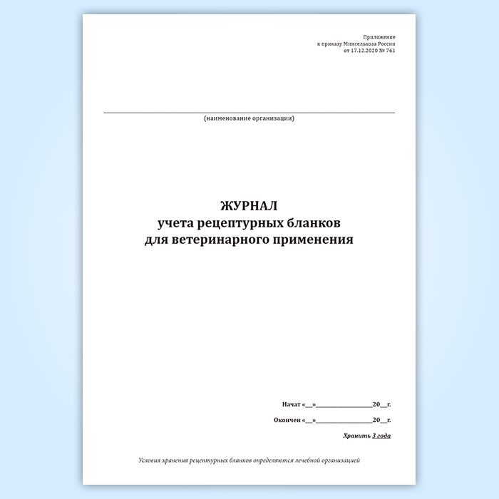 Журнал учета рецептурных бланков для ветеринарного применения в Рошале купить