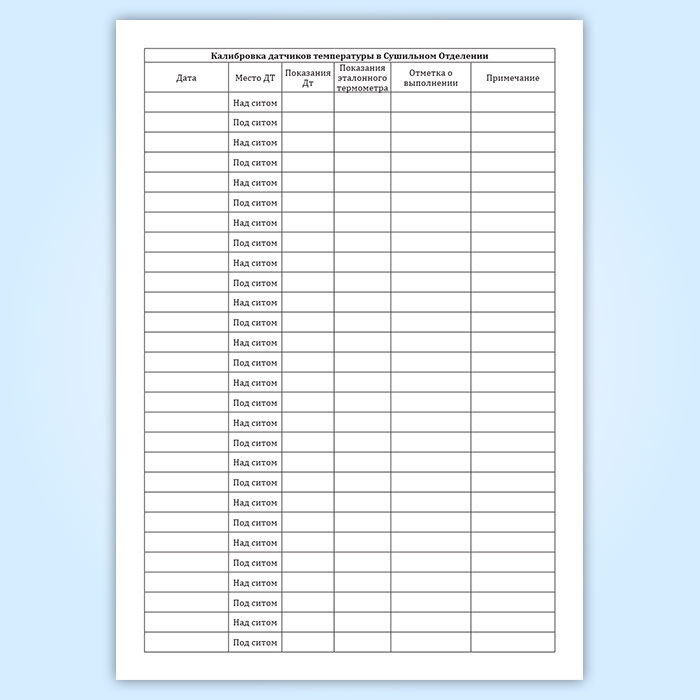 Журнал калибровки датчиков температуры в сушильном отделении в Рошале купить