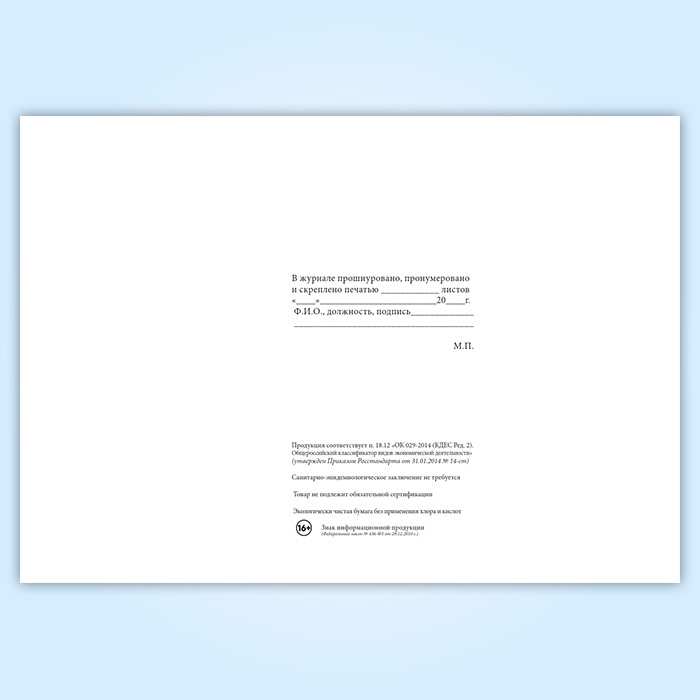 Вы получаете печатную продукцию прошнурованной и c местом для вашей печати в соответствии с действующими нормативными документами: