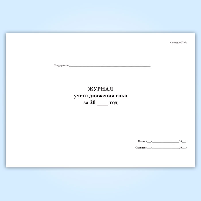 Журнал учета движения сока (форма № П-6п) в Рошале купить
