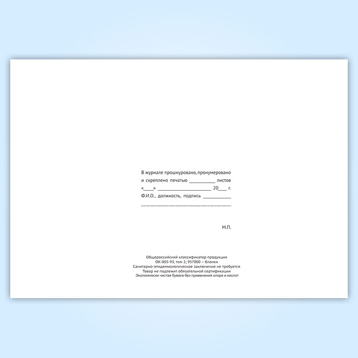 Вы получаете печатную продукцию прошнурованной и c местом для вашей печати в соответствии с действующими нормативными документами: