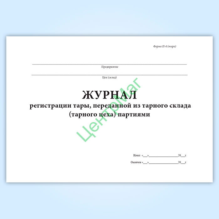 Журнал регистрации тары, переданной из тарного склада (тарного цеха) партиями (форма № П-4 тара) в Рошале купить