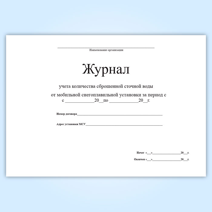 Журнал учета количества сброшенной сточной воды от мобильной снегоплавильной установки в Рошале купить
