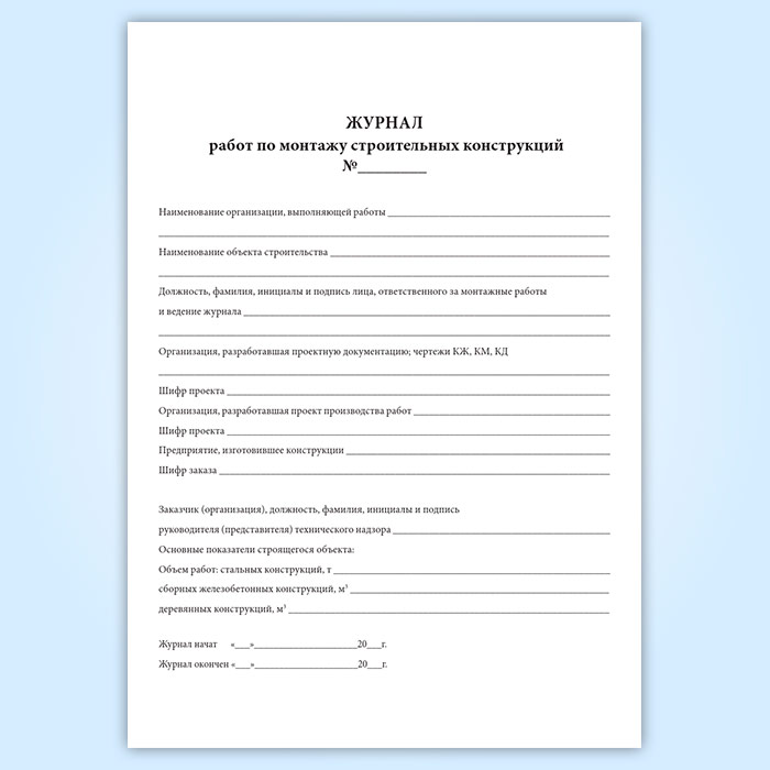 Журнал работ по монтажу строительных конструкций в Рошале купить