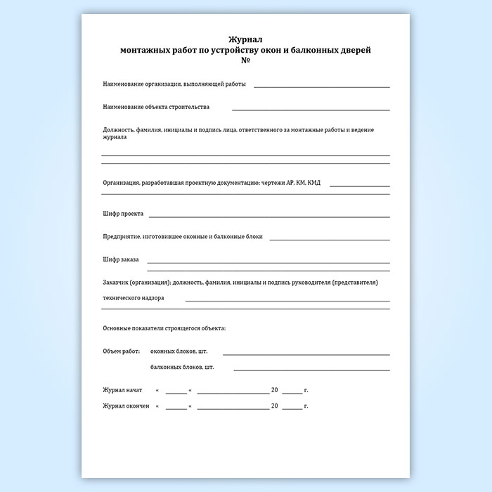 Журнал монтажных работ по устройству окон и балконных дверей в Рошале купить