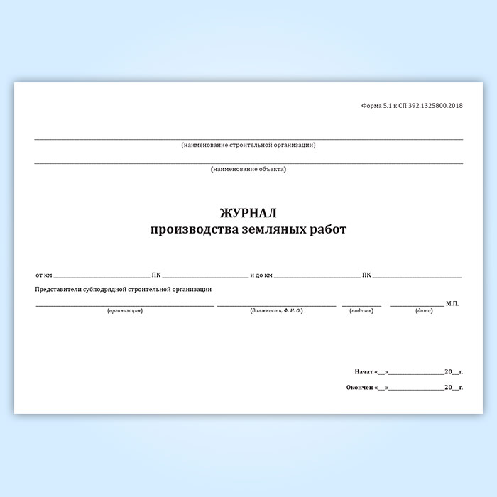 Журнал производства земляных работ (форма 5.1) в Рошале купить