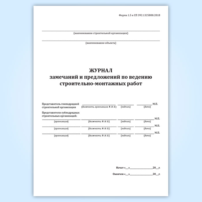 Журнал замечаний и предложений по ведению строительно-монтажных работ (форма 1.5, СП 392.1325800.2018) в Рошале купить