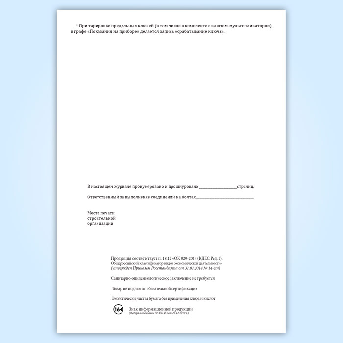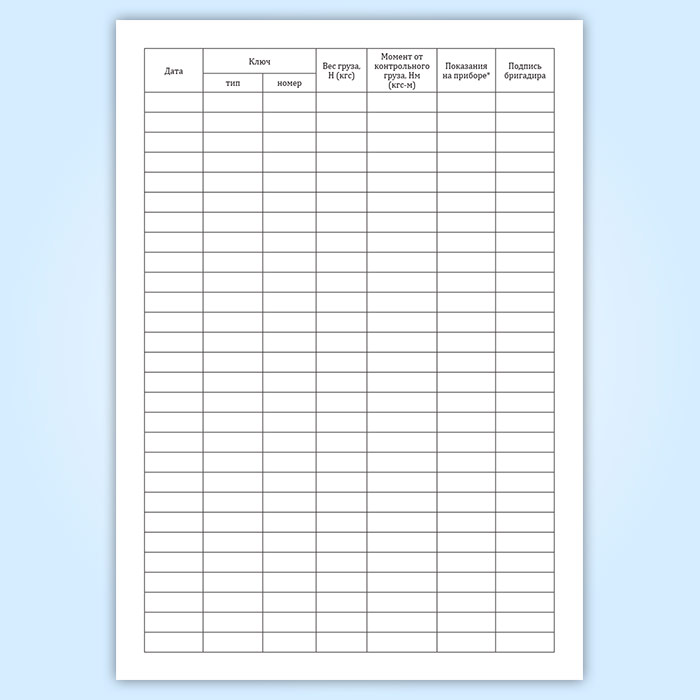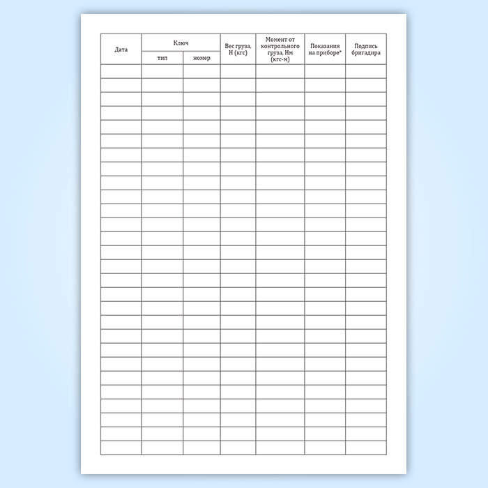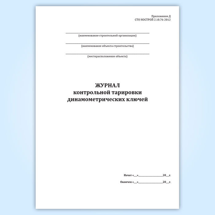 Журнал контрольной тарировки динамометрических ключей (СТО НОСТРОЙ 2.10.76-2012) в Рошале купить
