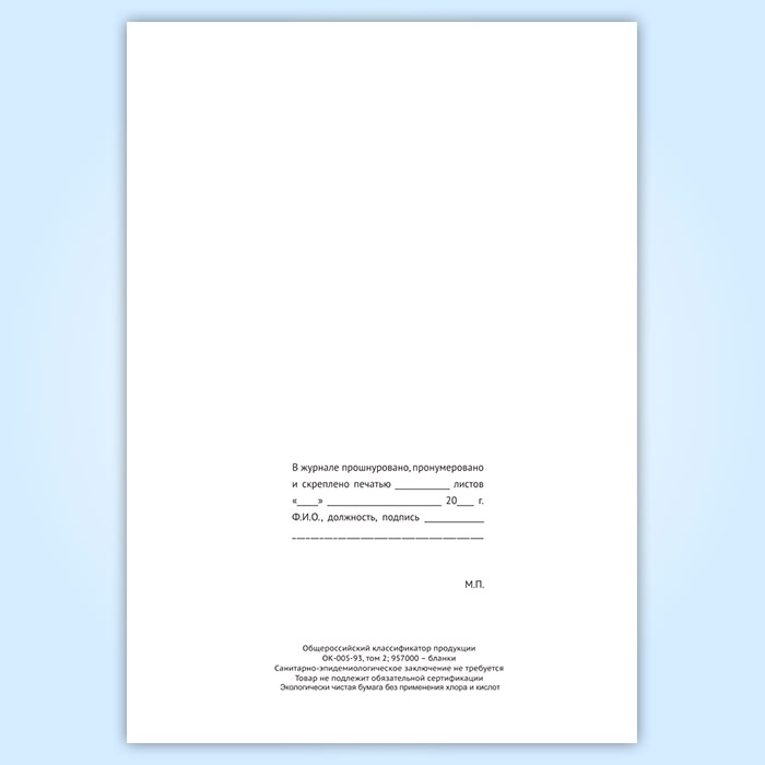 Вы получаете печатную продукцию прошнурованной и c местом для вашей печати в соответствии с действующими нормативными документами: