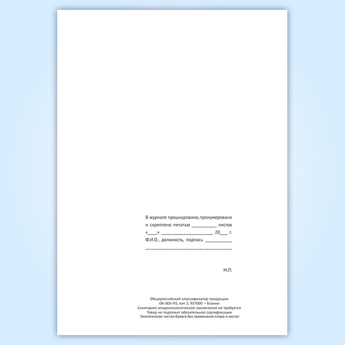 Вы получаете печатную продукцию прошнурованной и c местом для вашей печати в соответствии с действующими нормативными документами: