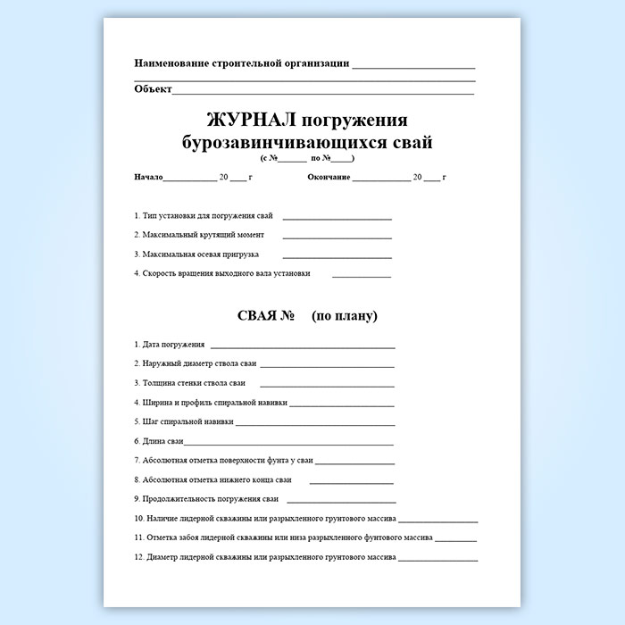 Журнал погружения бурозавинчивающихся свай в Рошале купить