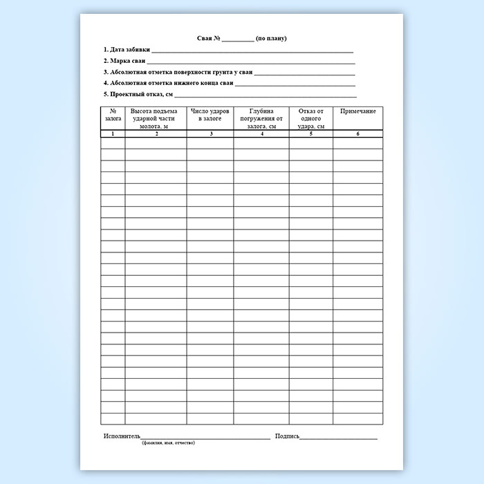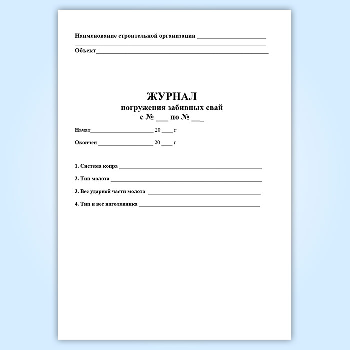 Журнал погружения забивных свай в Рошале купить