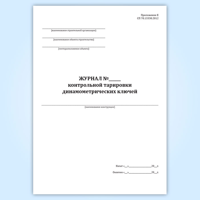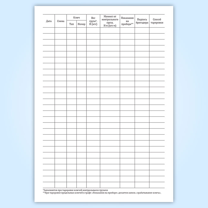 Журнал контрольной тарировки динамометрических ключей в Рошале купить