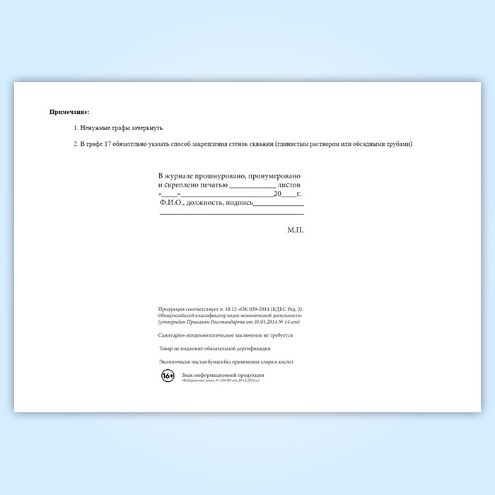 Вы получаете печатную продукцию прошнурованной и c местом для вашей печати в соответствии с действующими нормативными документами: