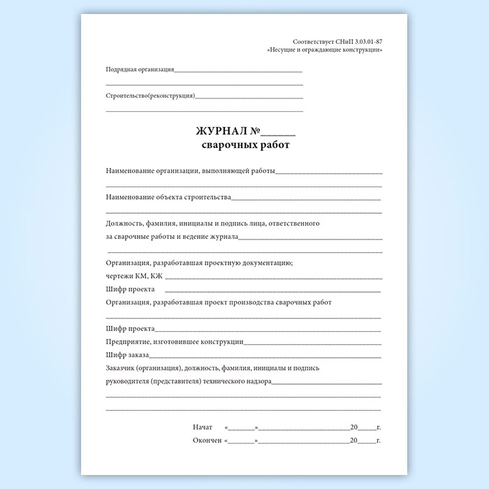 Журнал сварочных работ (СНиП 30301-87) в Рошале купить