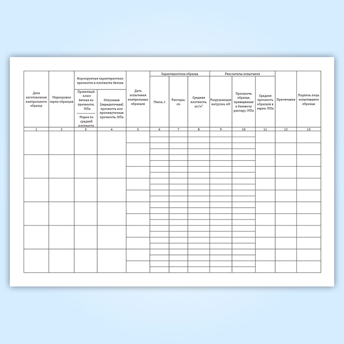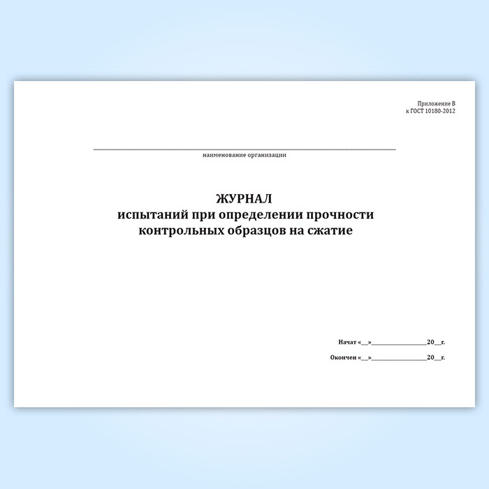 Журнал испытаний при определении прочности контрольных образцов на сжатие в Рошале купить