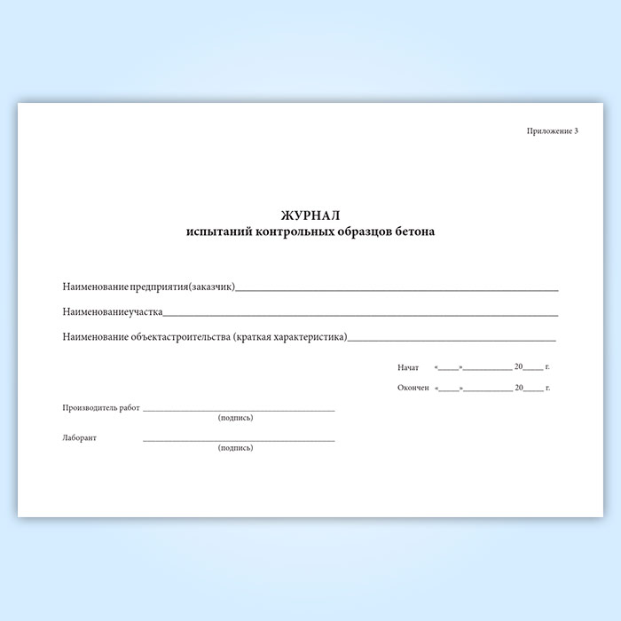 Журнал испытаний контрольных образцов бетона (ВСН 430-82) в Рошале купить