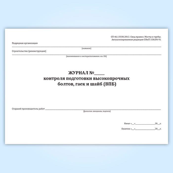 Журнал контроля подготовки высокопрочных болтов, гаек и шайб в Рошале купить