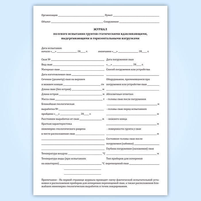Журнал полевого испытания грунтов статическими вдавливающими, выдергивающими и горизонтальными нагрузками в Рошале купить