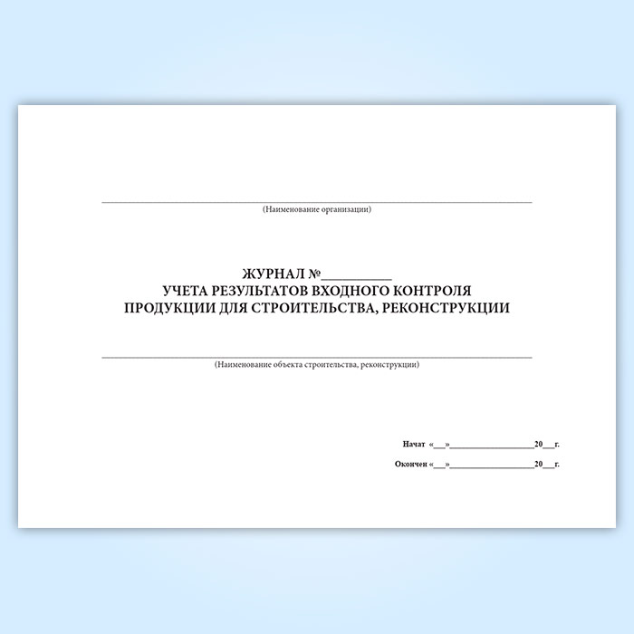 Журнал учета результатов входного контроля продукции для строительства, реконструкции в Рошале купить