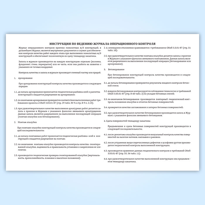 Журнал операционного контроля приемки монолитных железобетонных конструкций в Рошале купить