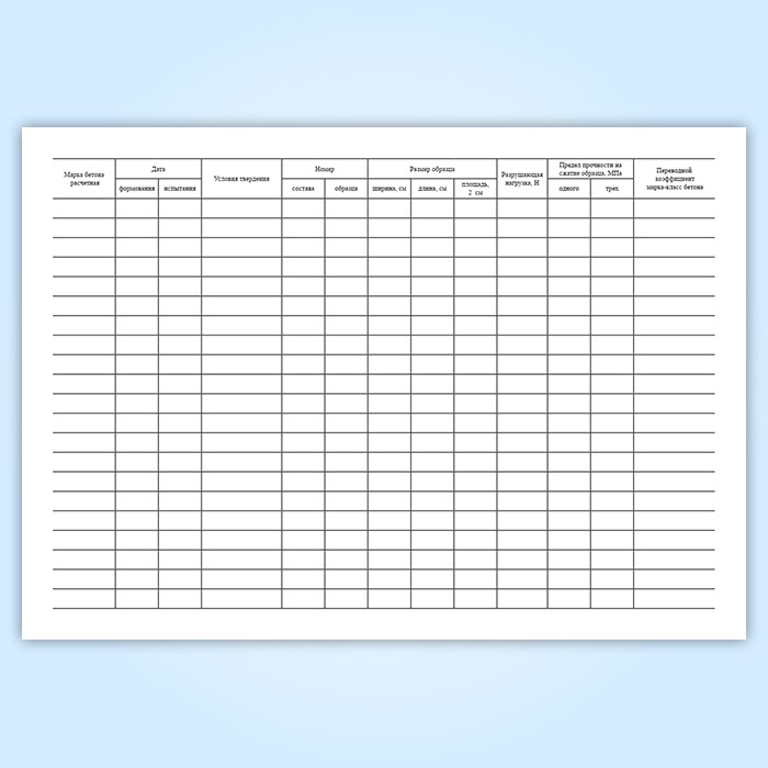 Журнал результатов по определению прочности бетона эталонным молотком Кашкарова в Рошале купить