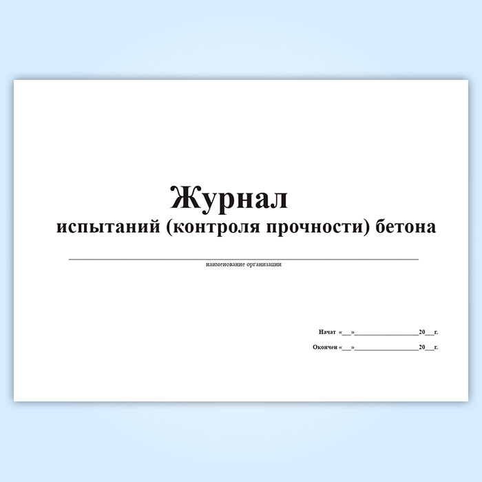 Журнал испытаний (контроля прочности) бетона в Рошале купить