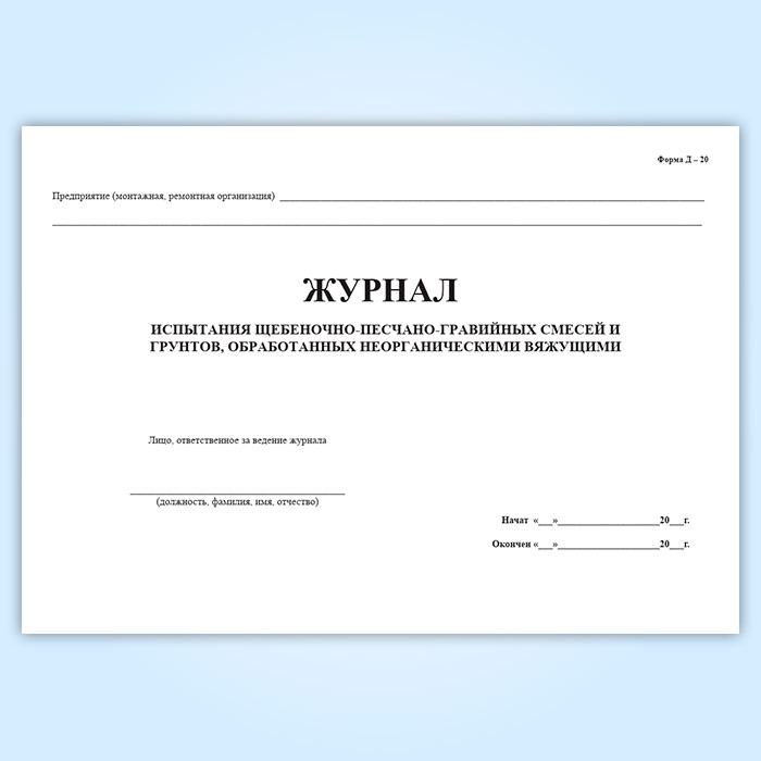 Журнал испытания щебеночно-песчано-гравийных смесей и грунтов, обработанных неорганическими вяжущими в Рошале купить