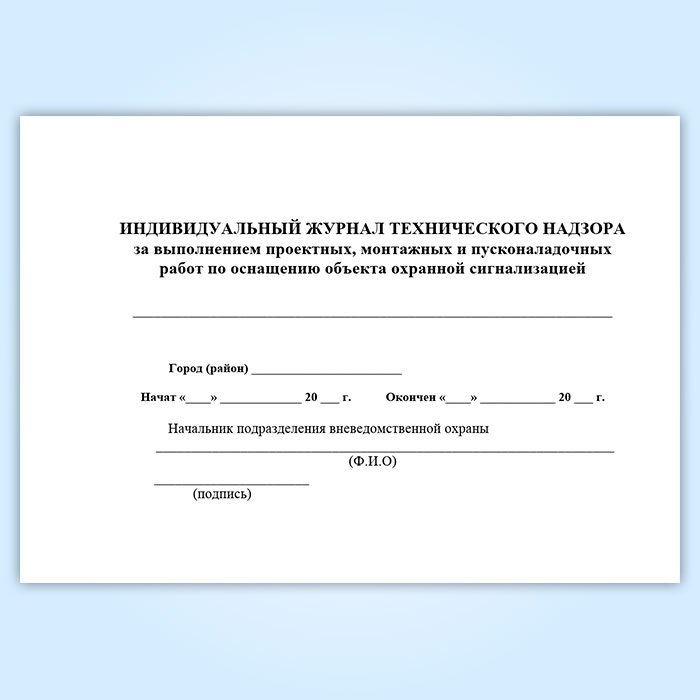 Индивидуальный журнал технического надзора за выполнением проектных, монтажных и пусконаладочных работ по оснащению объекта охранной сигнализацией в Рошале купить