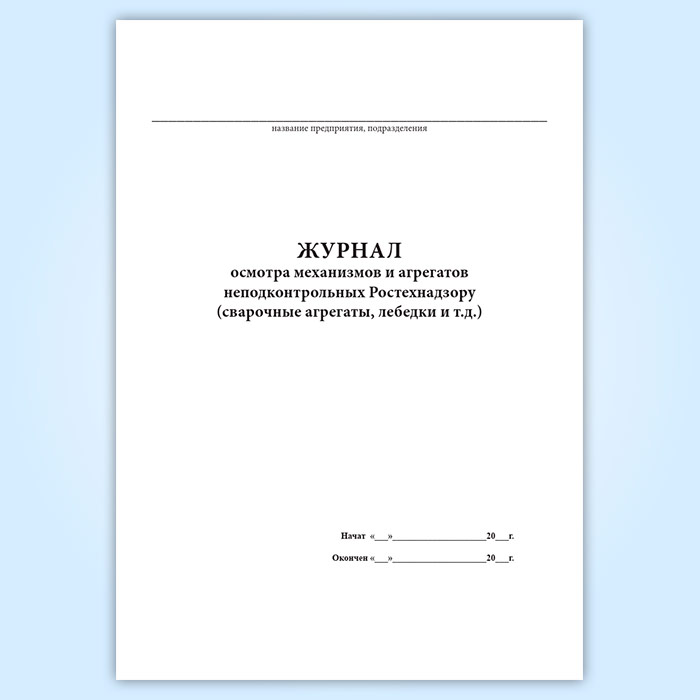 Журнал осмотра механизмов и агрегатов неподконтрольных Ростехнадзору в Рошале купить