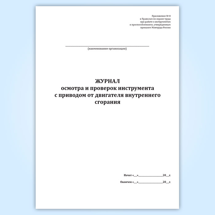 Журнал осмотра и проверок инструмента с приводом от двигателя внутреннего сгорания в Рошале купить