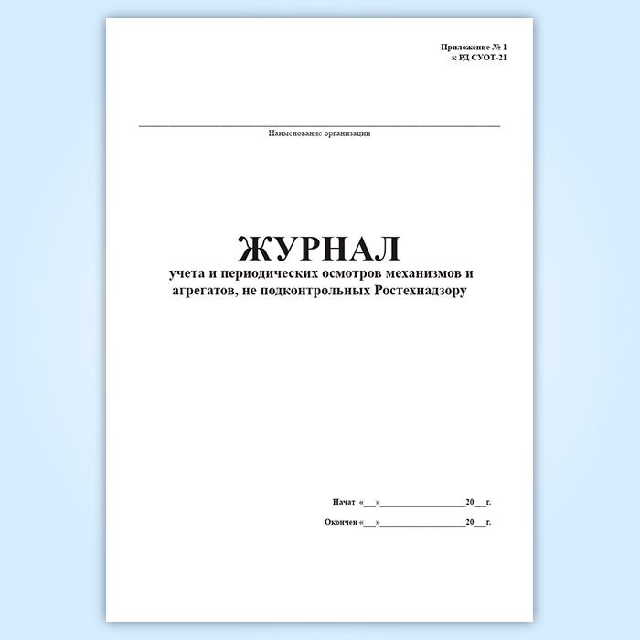 Журнал учета и периодических осмотров механизмов и агрегатов, не подконтрольных Ростехнадзору в Рошале купить