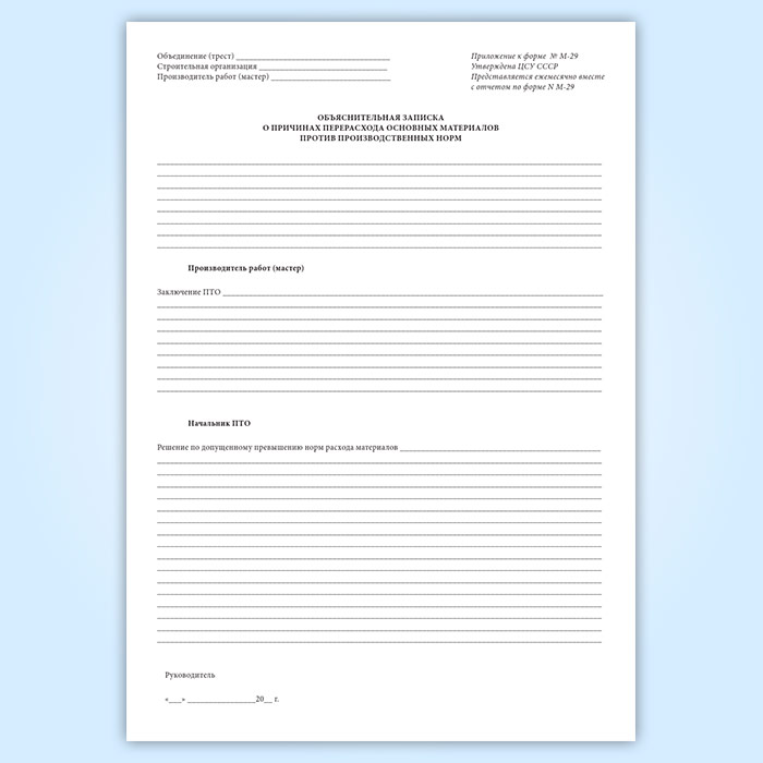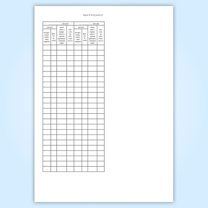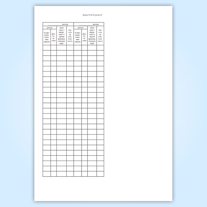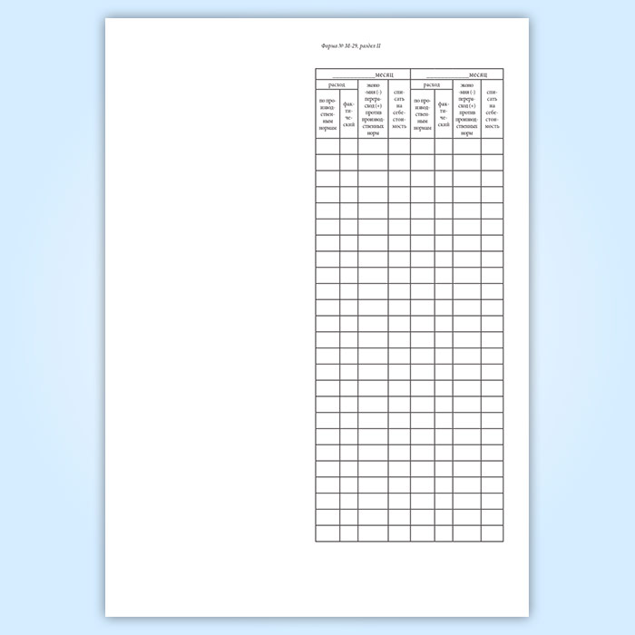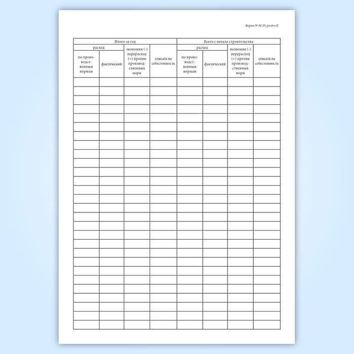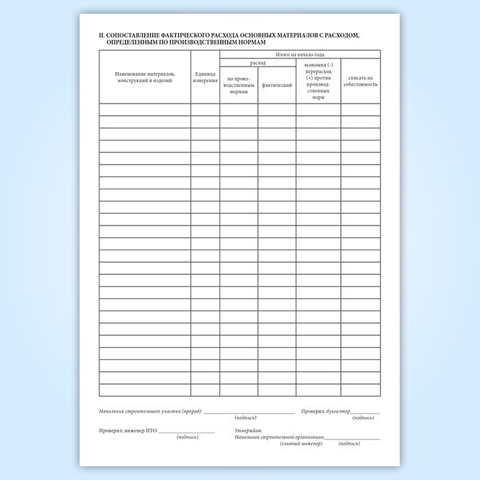 Отчет о расходе основных материалов в строительстве в сопоставлении с расходом, определенным по производственным нормам (форма М-29) в Рошале купить