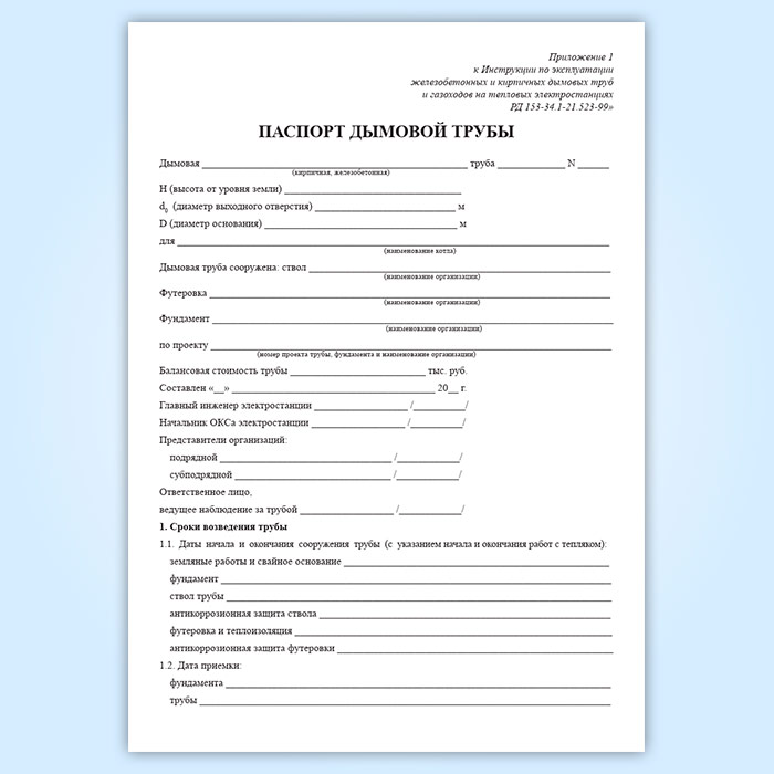 Паспорт дымовой трубы в Рошале купить