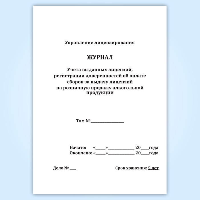 Журнал учета выданных лицензий, регистрации доверенностей об оплате сборов за выдачу лицензий на розничную продажу алкогольной продукции в Рошале купить