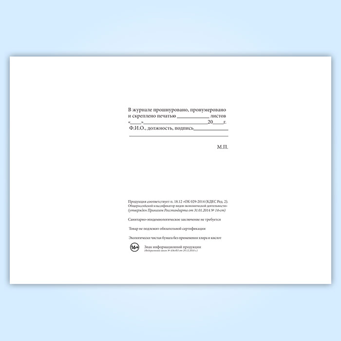 Вы получаете печатную продукцию прошнурованной и c местом для вашей печати в соответствии с действующими нормативными документами: