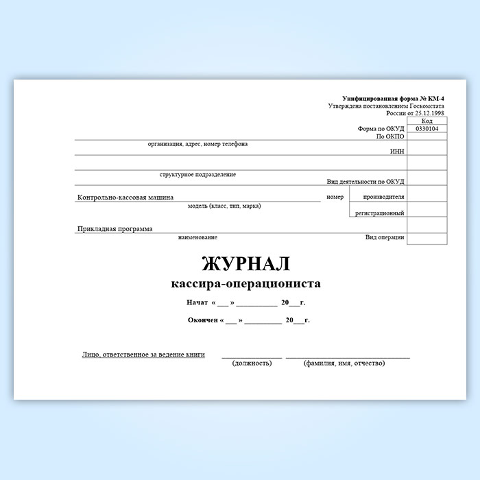 Журнал кассира-операциониста, горизонтальный (форма № КМ-4) в Рошале купить