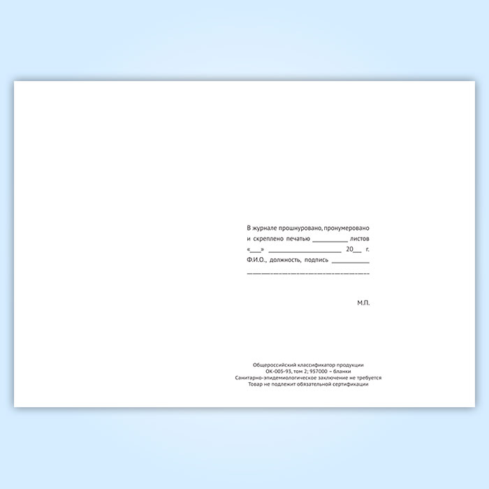 Вы получаете печатную продукцию прошнурованной и c местом для вашей печати в соответствии с действующими нормативными документами: