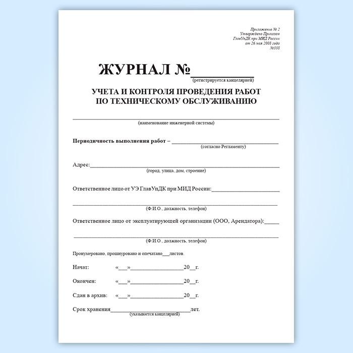 Журнал учета и контроля проведения работ по техническому обслуживанию в Рошале купить