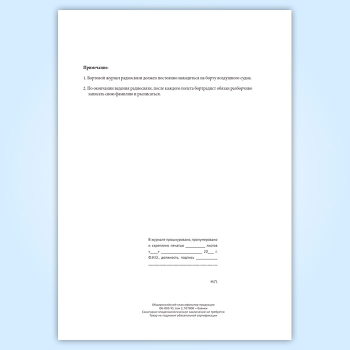 Бортовой журнал радиосвязи воздушного судна авиапредприятия в Рошале купить
