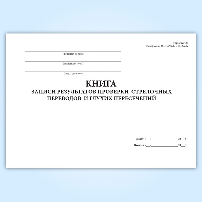 Книга записи результатов проверки стрелочных переводов и глухих пересечений (форма ПУ-29) в Рошале купить