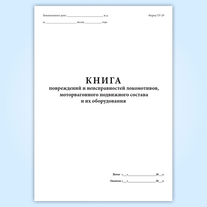 Книга повреждений и неисправностей локомотивов, моторвагонного подвижного состава и их оборудования (форма ТУ-29) в Рошале купить