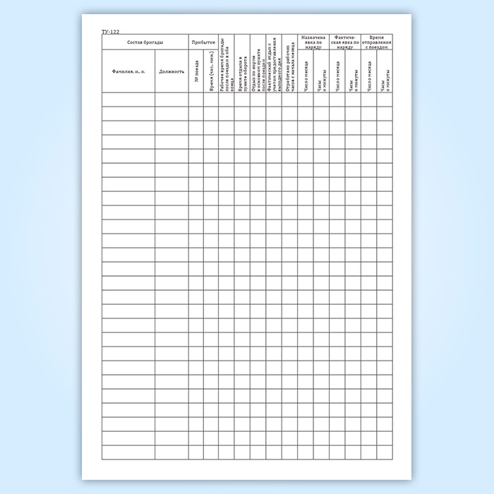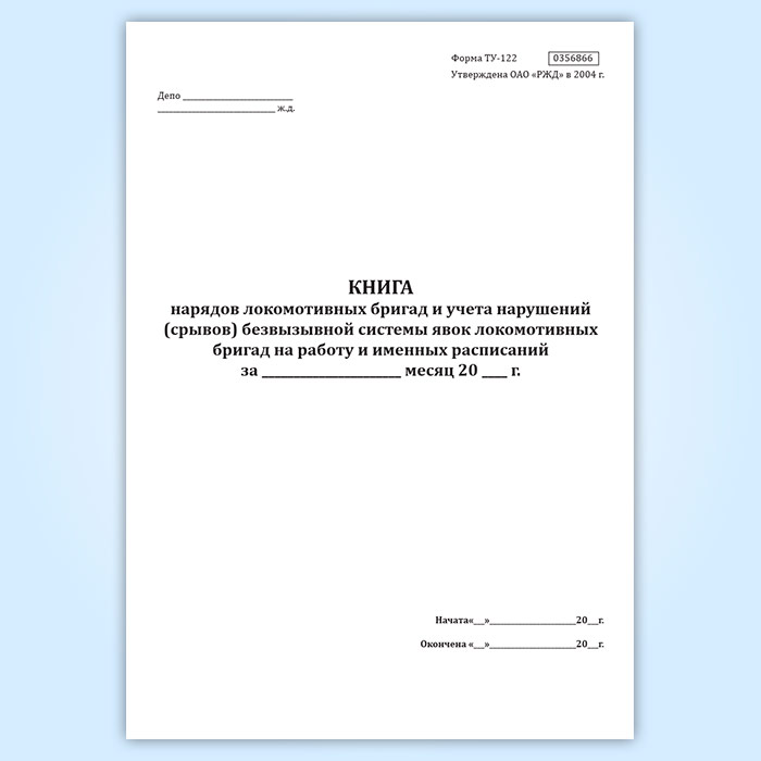 Книга нарядов локомотивных бригад и учета нарушений (срывов) безвызывной системы явок локомотивных бригад на работу и именных расписаний (форма ТУ-122) в Рошале купить