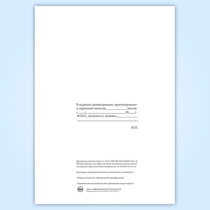 Вы получаете печатную продукцию прошнурованной и c местом для вашей печати в соответствии с действующими нормативными документами: