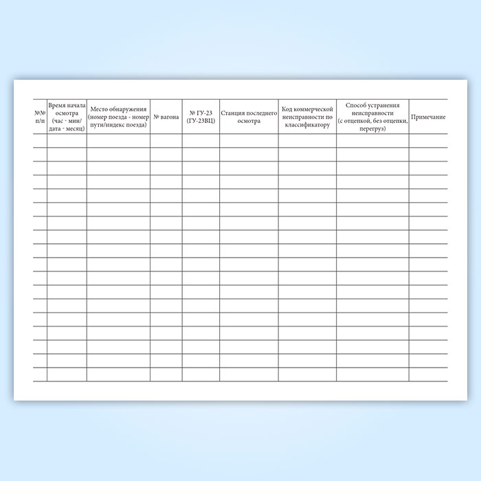 Книга регистрации коммерческих неисправностей вагонов в поездах в пунктах коммерческого осмотра (форма ГУ-98ВЦ) в Рошале купить