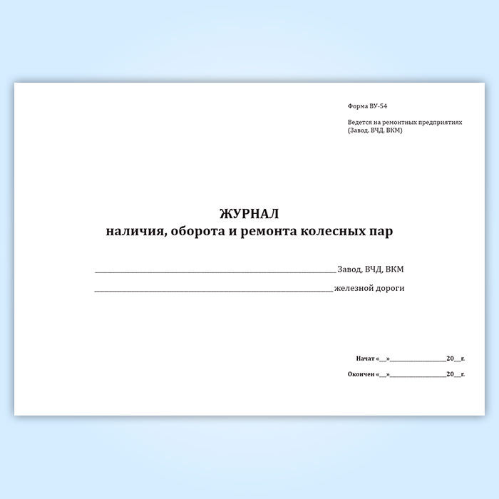 Журнал учета наличия, оборота и ремонта колесных пар (форма ВУ-54) в Рошале купить