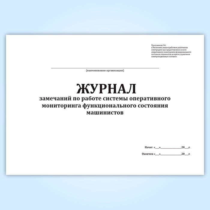 Журнал замечаний по работе системы оперативного мониторинга функционального состояния машинистов в Рошале купить