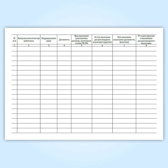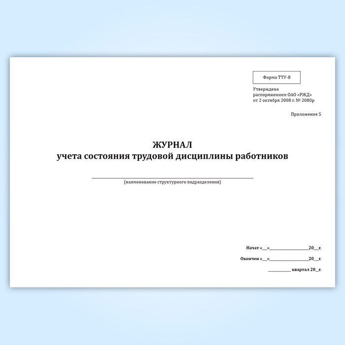 Журнал учета состояния трудовой дисциплины работников (форма ТТУ-8) в Рошале купить